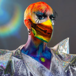 The first hood made, one of one. An electric ocean dream laced with golden seduction. Siren Static calls to wild-hearted creatures who hypnotize the dance floor, lure strangers closer, and leave neon destruction in their wake.