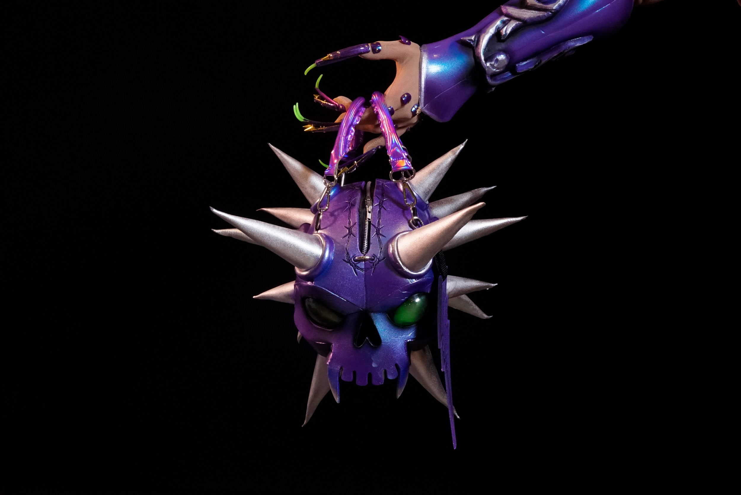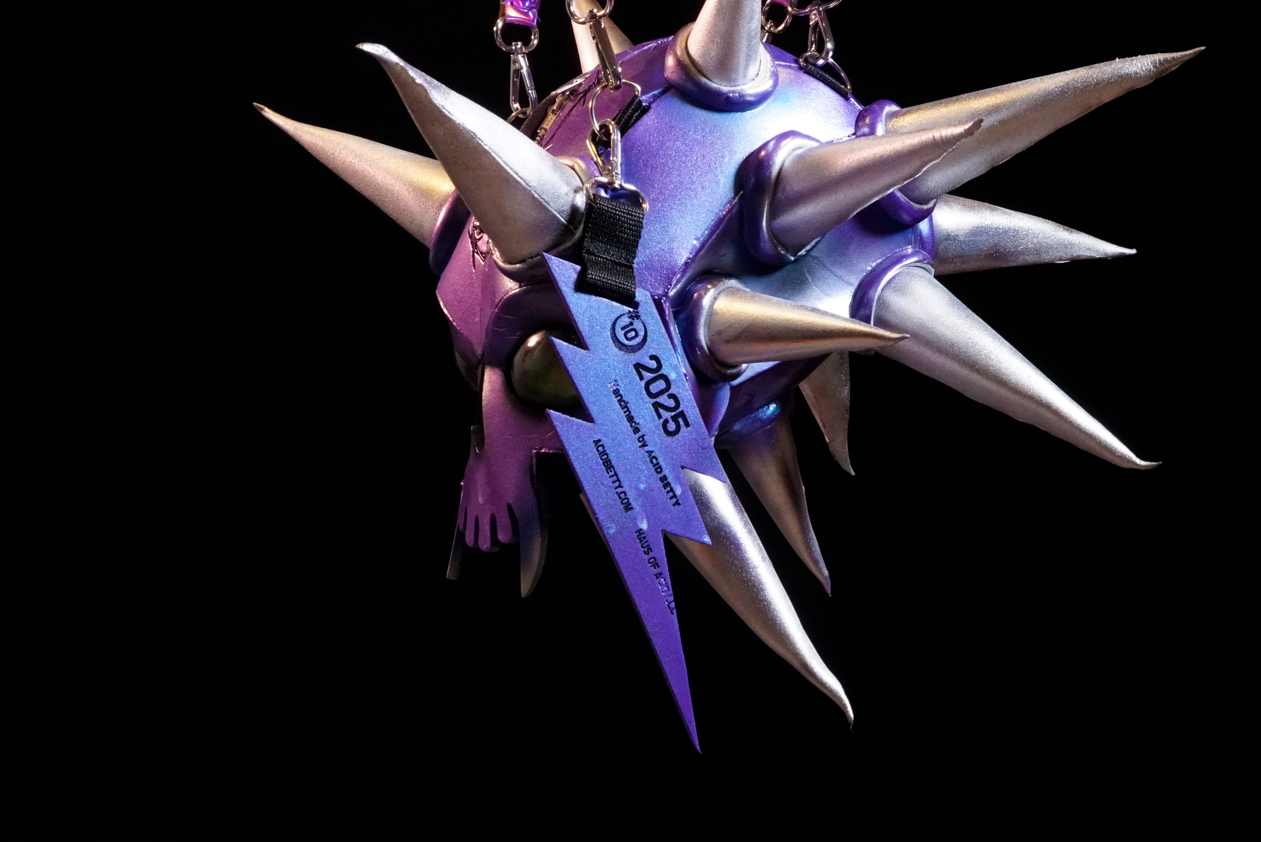 This bold, wearable art piece is inspired by Acid Betty’s unforgettable All Stars 10 promotional purple look. Handmade from EVA foam and detailed with acrylic paint, each bag is truly one of a kind.