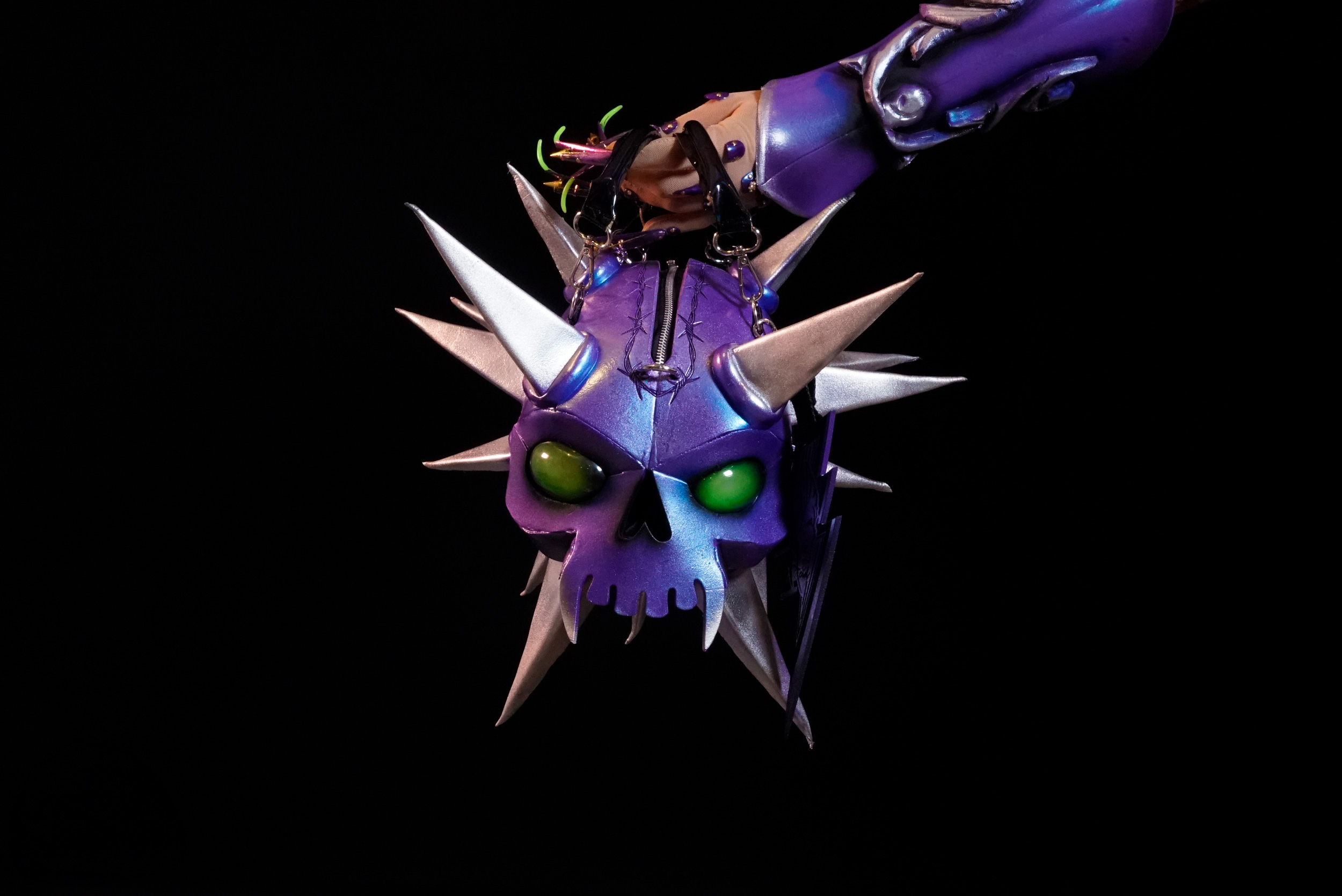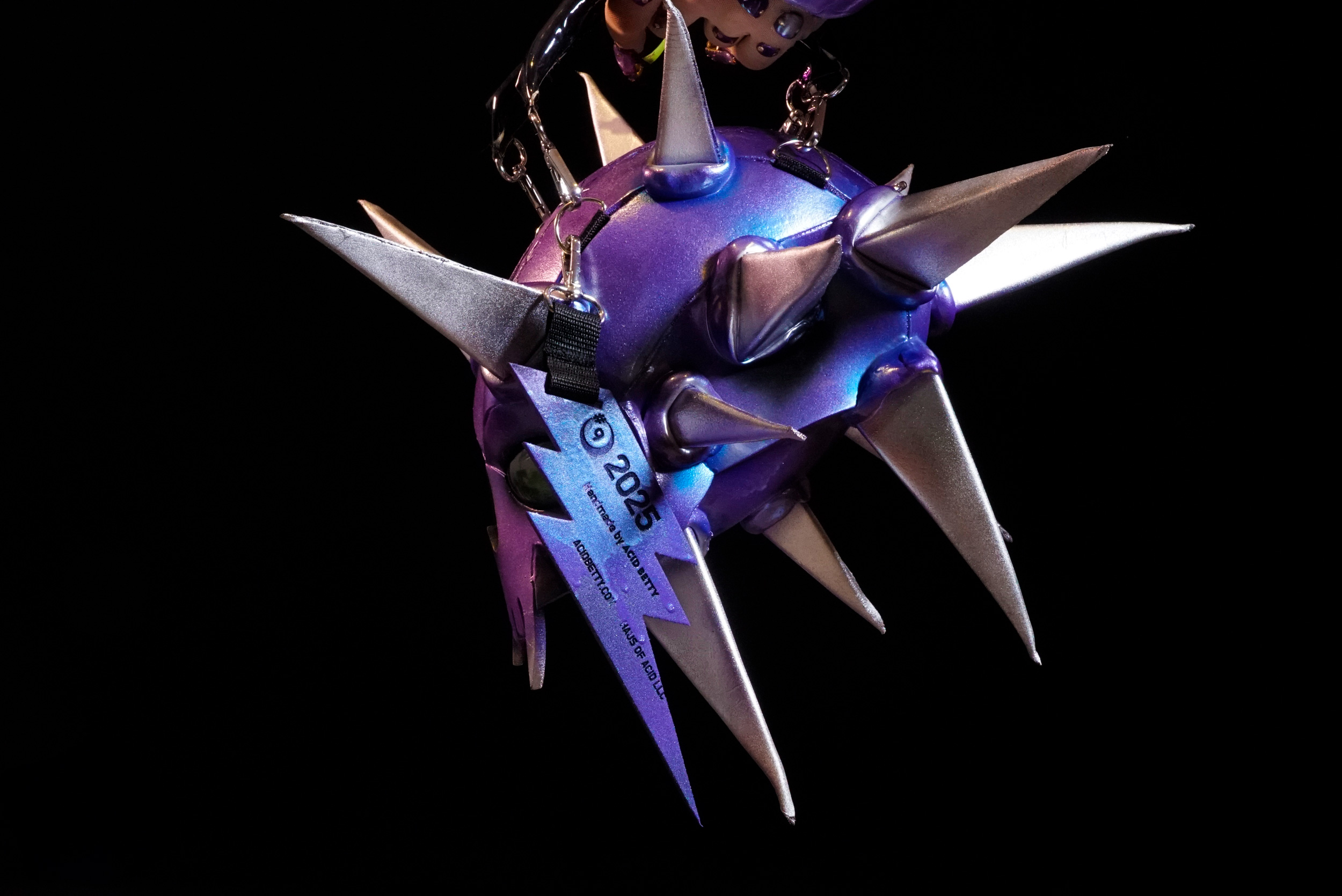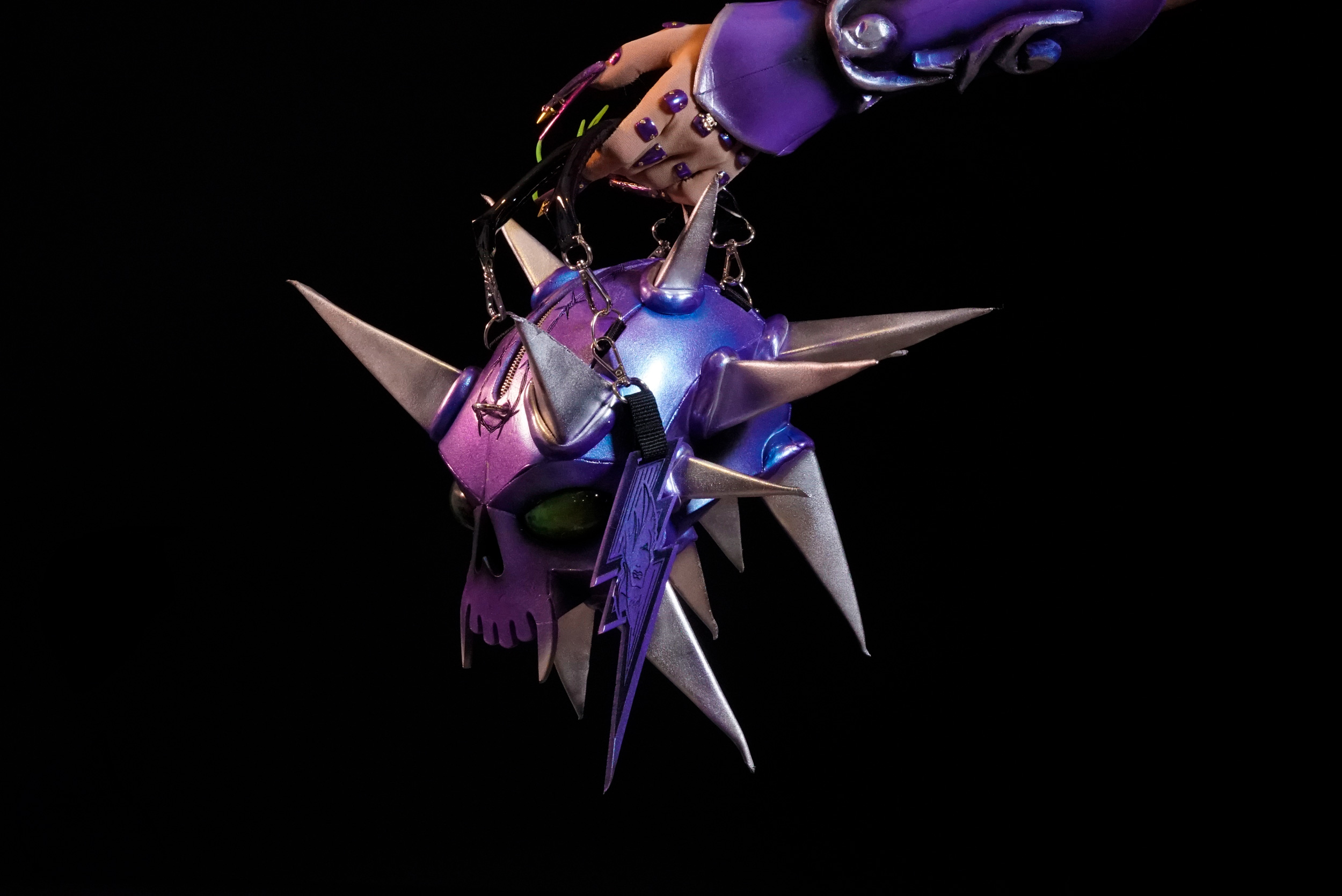 This bold, wearable art piece is inspired by Acid Betty’s unforgettable All Stars 10 promotional purple look. Handmade from EVA foam and detailed with acrylic paint, each bag is truly one of a kind.